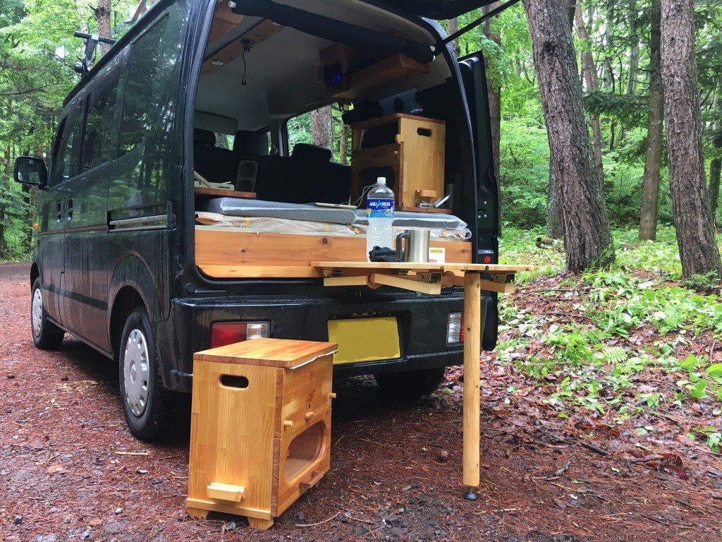 自社制作車両です。キャンピングも車中泊もこなせます。使い方はオーナーさんしだいです。